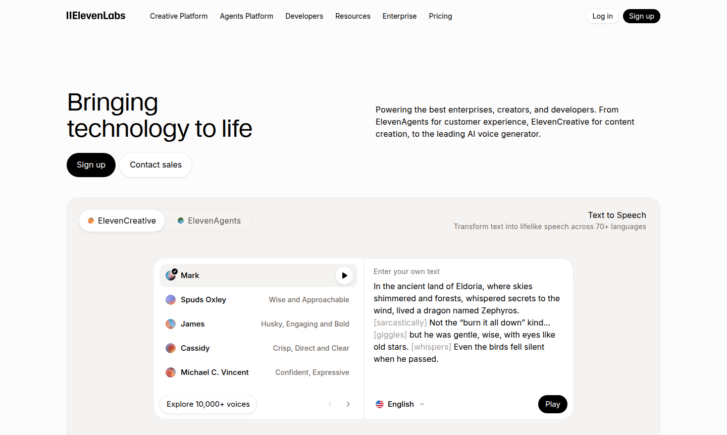 Discover ElevenLabs for AI voice generation, text-to-speech in 70+ languages, voice cloning, conversational agents, and music generation. Trusted by enterprises.
