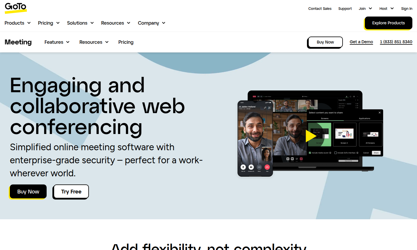 GoTo Meeting offers enterprise-grade web conferencing with HD video, audio, security, and mobile access. Ideal for remote teams with a 14-day free trial.