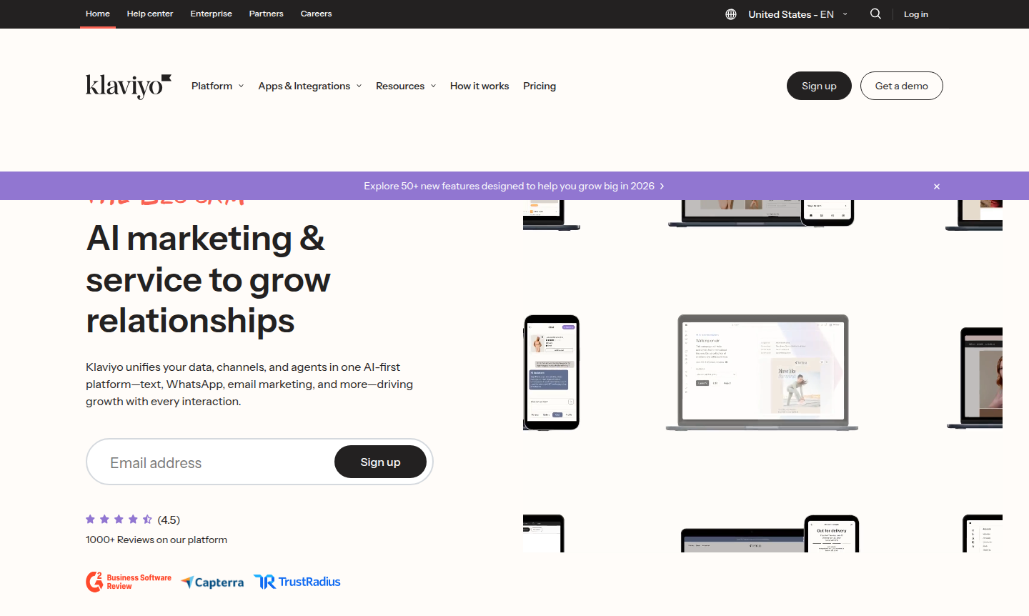 Discover Klaviyo, an AI-driven B2C CRM platform for email marketing, SMS automation, and customer service. Ideal for e-commerce brands with omnichannel features.