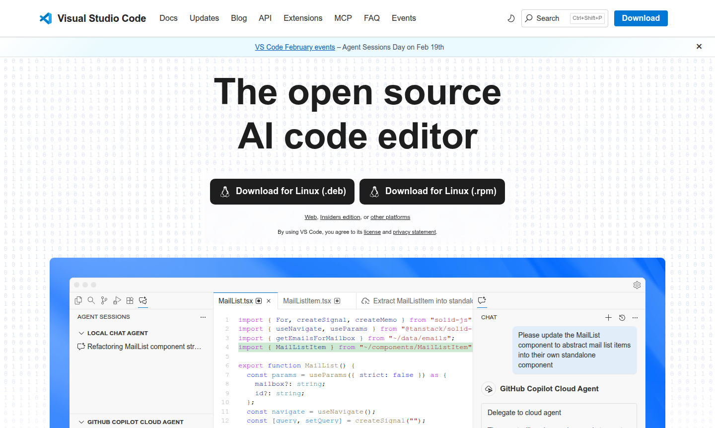Discover Visual Studio Code, the free, open-source code editor with AI features like GitHub Copilot. Supports multiple languages, extensions, and cross-platform development for web, desktop, and mobile.